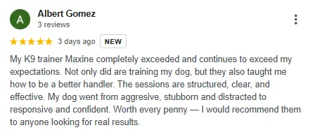 🐾 Next-Step Training Recommendations If we’re the right fit, you’ll know exactly what comes next to turn your dog into the well-behaved pet you’ve always wanted.